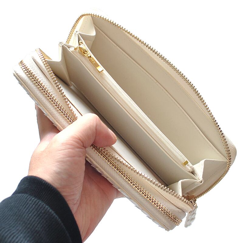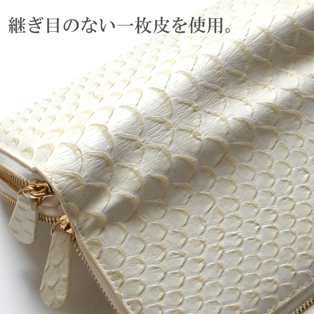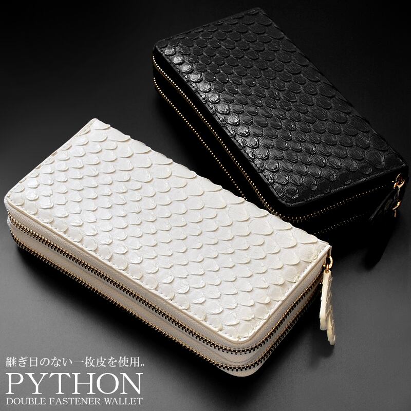 継ぎ目のない一枚取り錦蛇皮を使用したダブルファスナーのラウンド長財布。