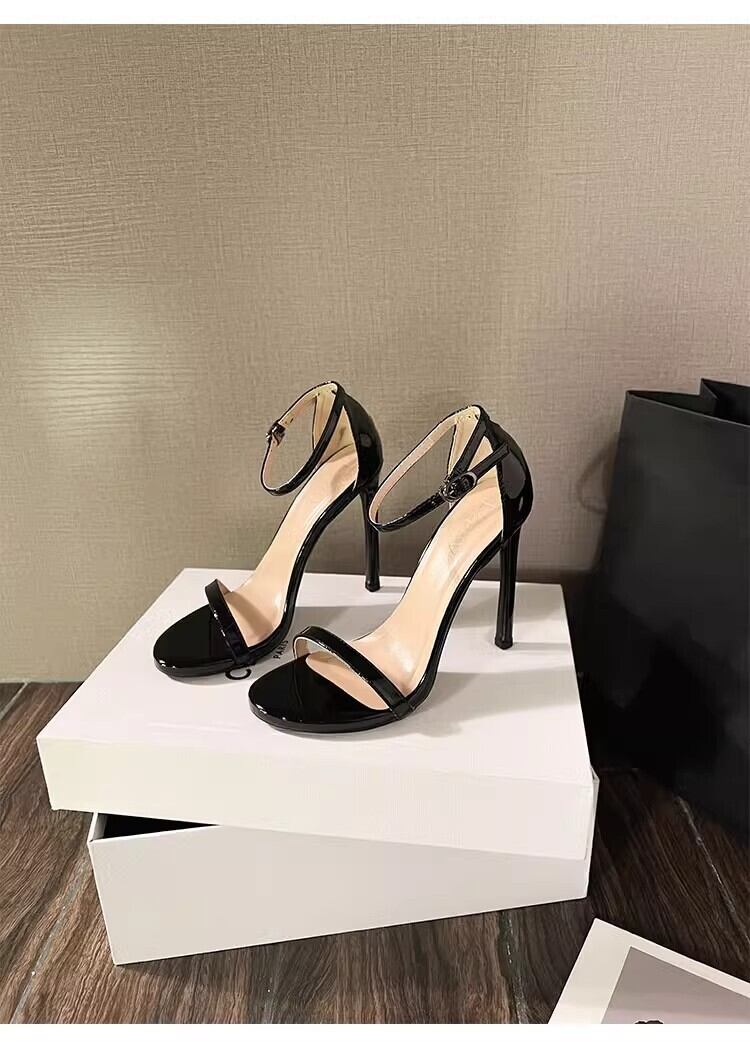 レディース サンダル ストラップ きれいめ 華奢ストラップ 選べるヒール高さ 美脚 脚長 黒 シルバー