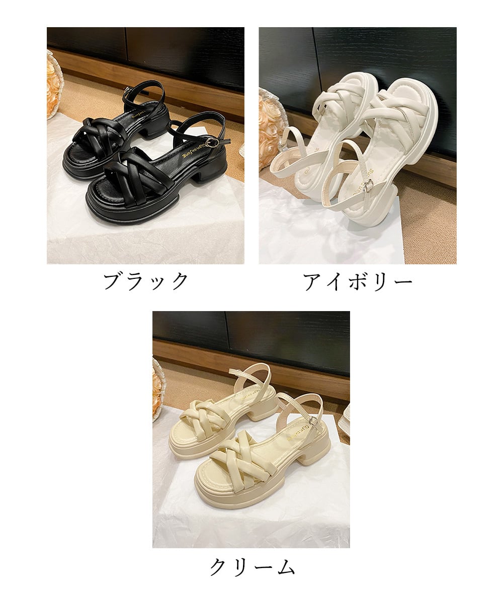 厚底サンダル ボリュームソール 編みベルト オルチャン 美脚 カジュアル お洒落 可愛い 痛くない 履きやすい