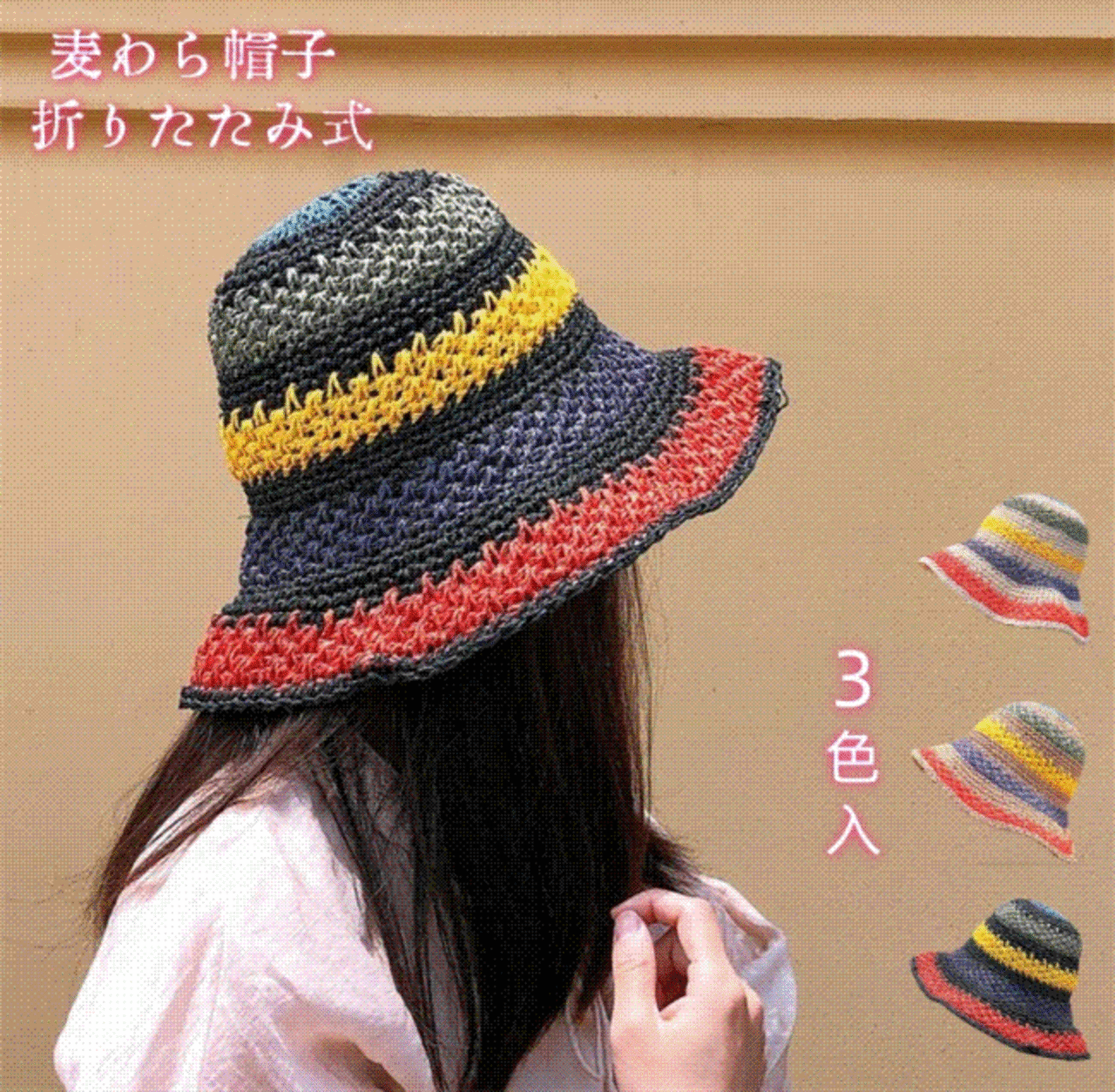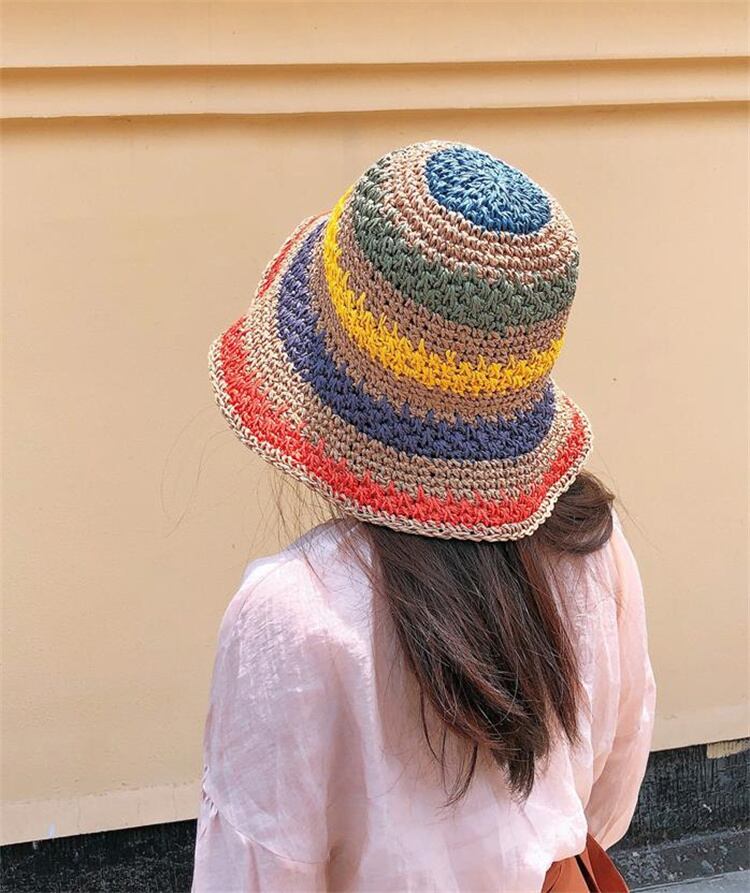 激売れ!韓国ファッション レインボー カラーマッチング 麦わら帽子 折りたたみ式
