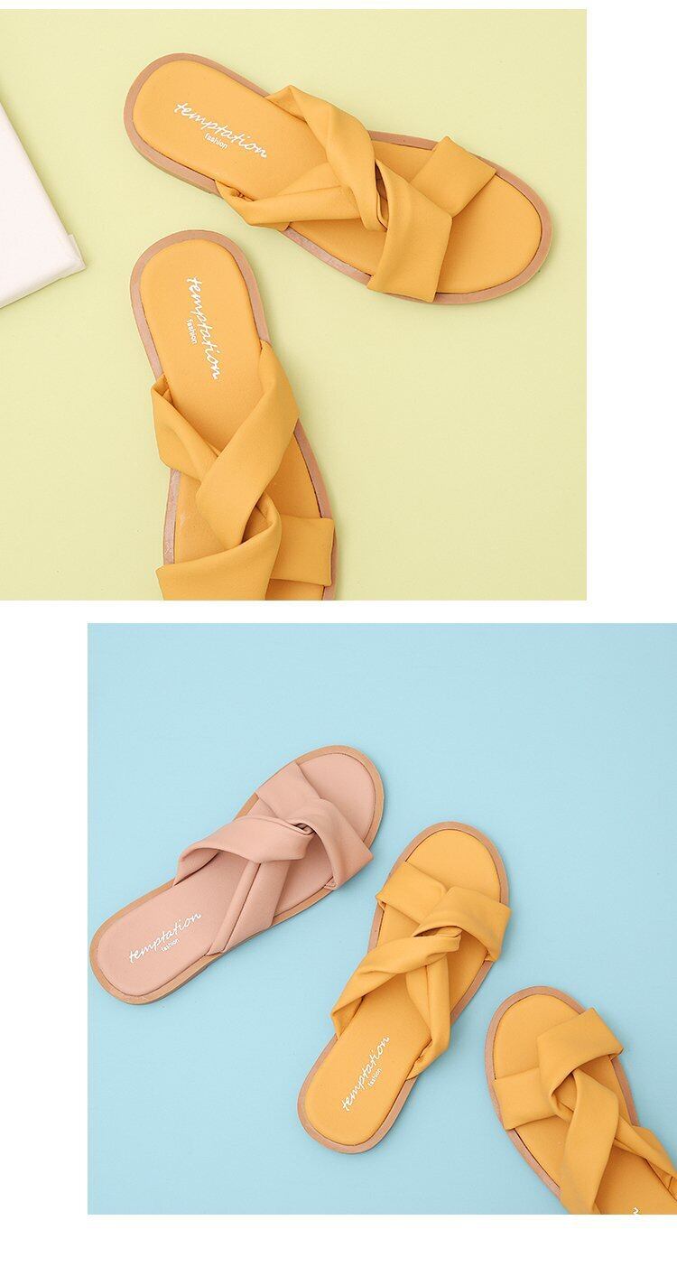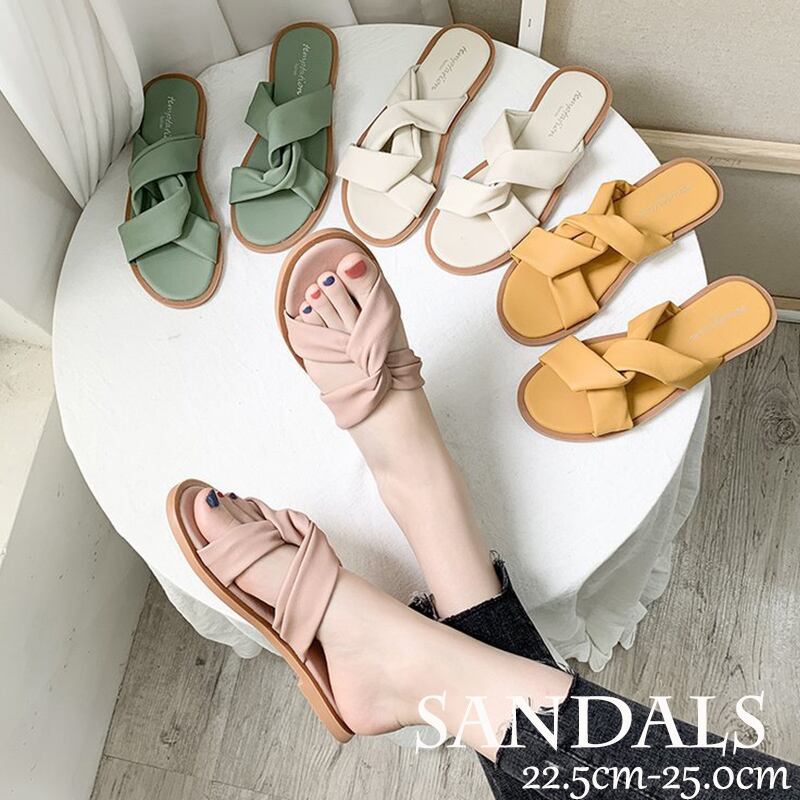 ポップなカラーがかわいい ツイストデザインフラットサンダル