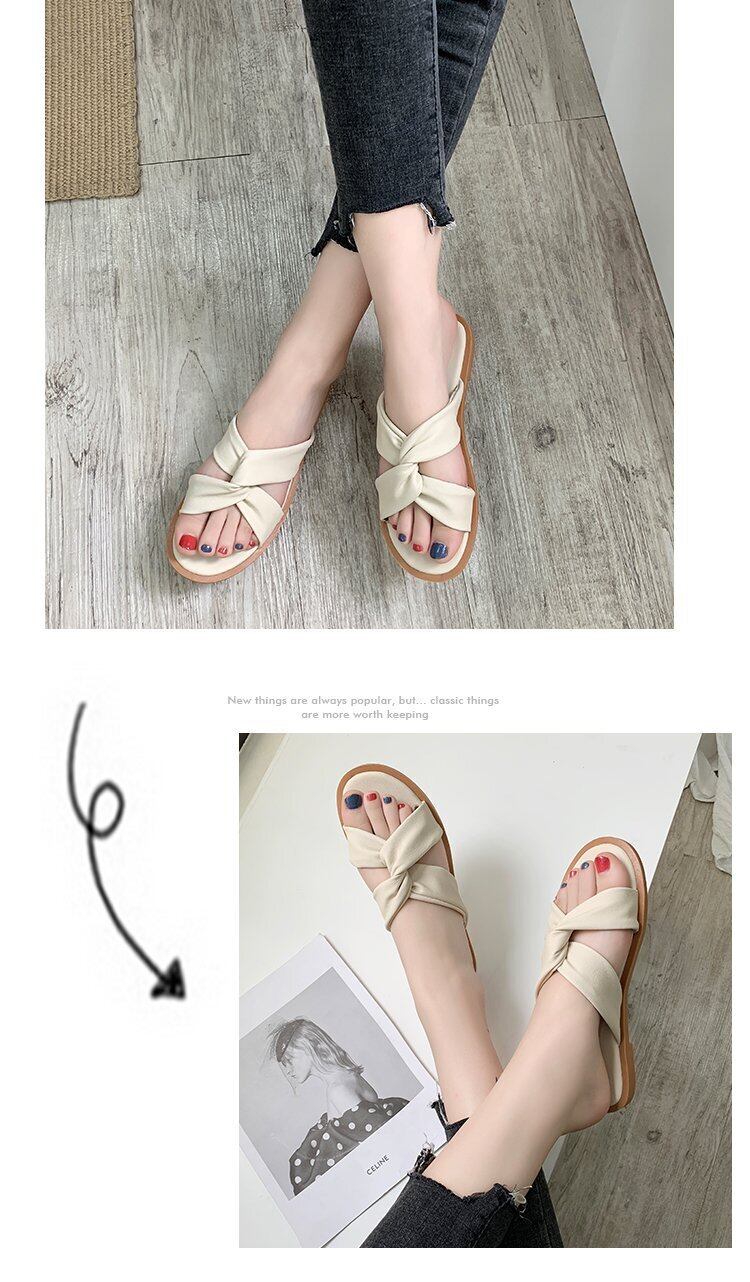 ・ポップなカラーがかわいいツイストデザインフラットサンダルです。