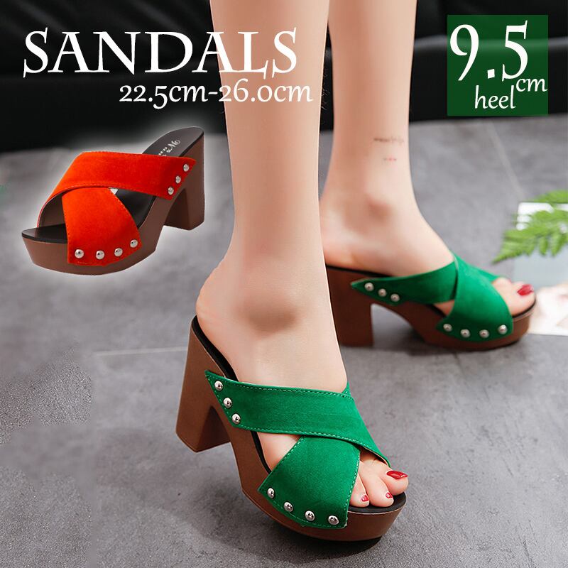 ・9.5cmヒールで脚長効果抜群のクロスベルトサンダル。