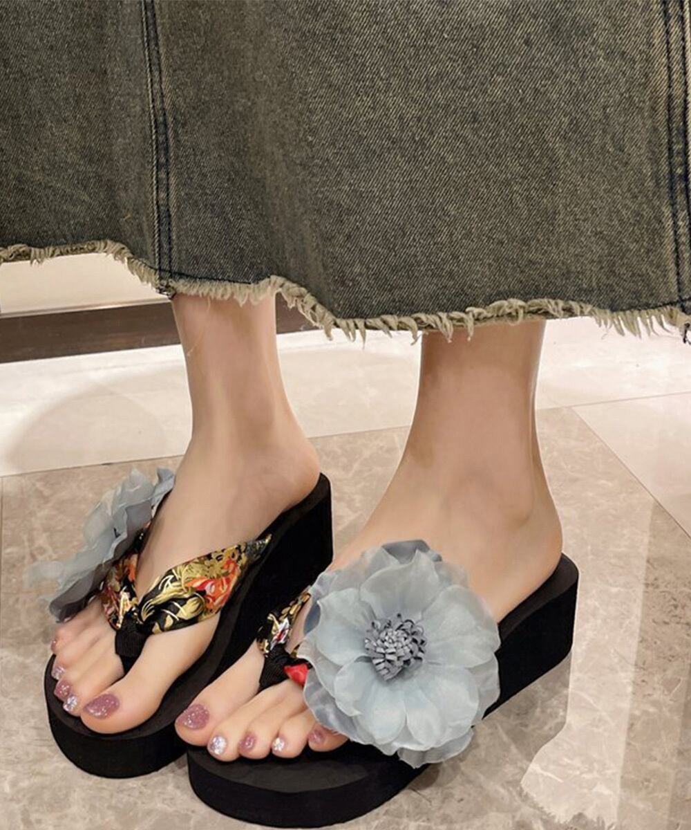 【日本倉庫即納】 ビーチサンダル 花飾りトングサンダル厚底