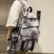チャーム付き タイダイ染めリュック 韓国風 バックパック 大容量 アウトドアリュック 通勤通学 かばん 遠足 A4